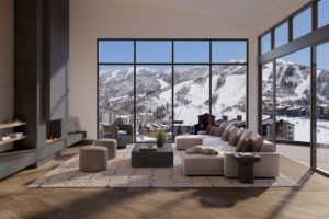 The intentionality of the project is also evident in its scale. The first phase, the Ski Time Square Building, will include just nine residences, positioned between two significant landscape experiences: the public energy of Legends’ Lane and the private calm of the central courtyard. This limited collection is designed to foster both privacy and a sense of community and the breathtaking mountain views.